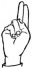 На ћирилици написано РАДНА ПОПАДИЋ састоји се из 12 слова [?]. Исписано ћириличном једноручном азбуком за глувонеме: